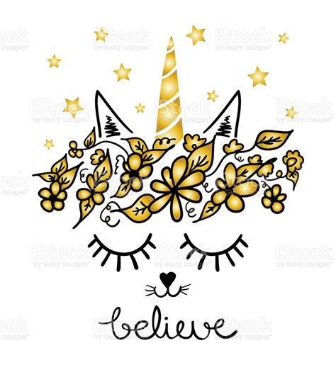 Cute Cat As Unicorn Drawing With Believe Text For T Shirts Stickers Posters Or Other Creative ...