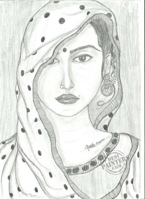 Pencil Sketches & Painting : Drawing of Desi Woman