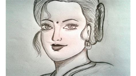 (Simple trick)how to draw a traditional indian girl sketch ...